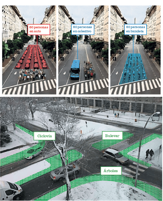 Los sistemas de transporte de alta capacidad y la movilidad activa pueden mover a una gran cantidad de personas de manera eficiente, ocupando un espacio mucho menor en comparación con la suma de autos individuales.