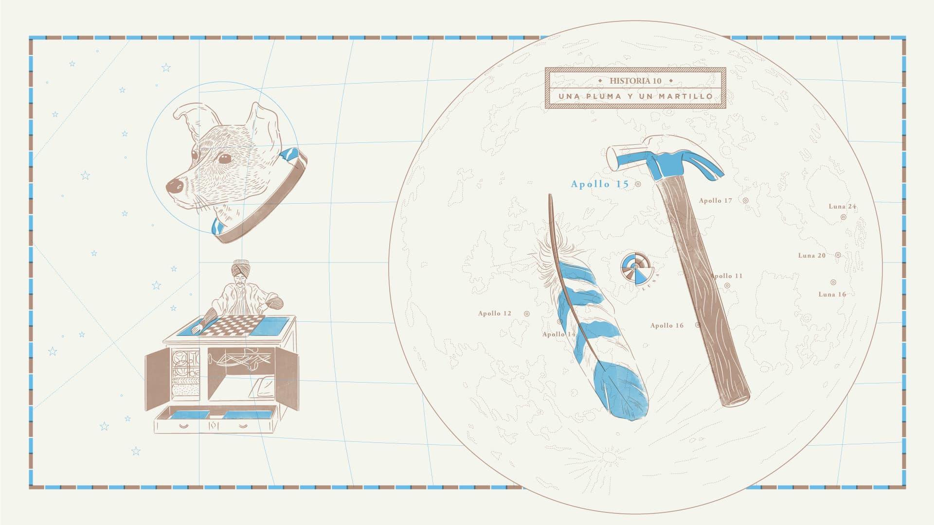 Yo creo que David Scott sabía que lo que estaban haciendo era una pérdida de tiempo absoluta porque posteriormente declaró, no sin ironía, haberse alegrado mucho al ver que el experimento salía bien ya que la misión entera (incluyendo la vuelta a casa) dependía de la física moderna basada en las observaciones de Galileo. Que ya sabían que funcionaba. Pero ¿qué otra cosa se puede hacer en la Luna? Siendo honestos, no es más que una roca enorme que flota ahí arriba. En lo personal, me declaro en contra de los viajes a la Luna. En algunos casos, he sabido estar en contra de la Luna misma. Y prefiero a la gente que, por mucha menos plata, vacaciona en Epecuén. Pero a nadie le importa mi opinión y esta no es mi historia. Yo sólo tenía que llegar hasta el final.