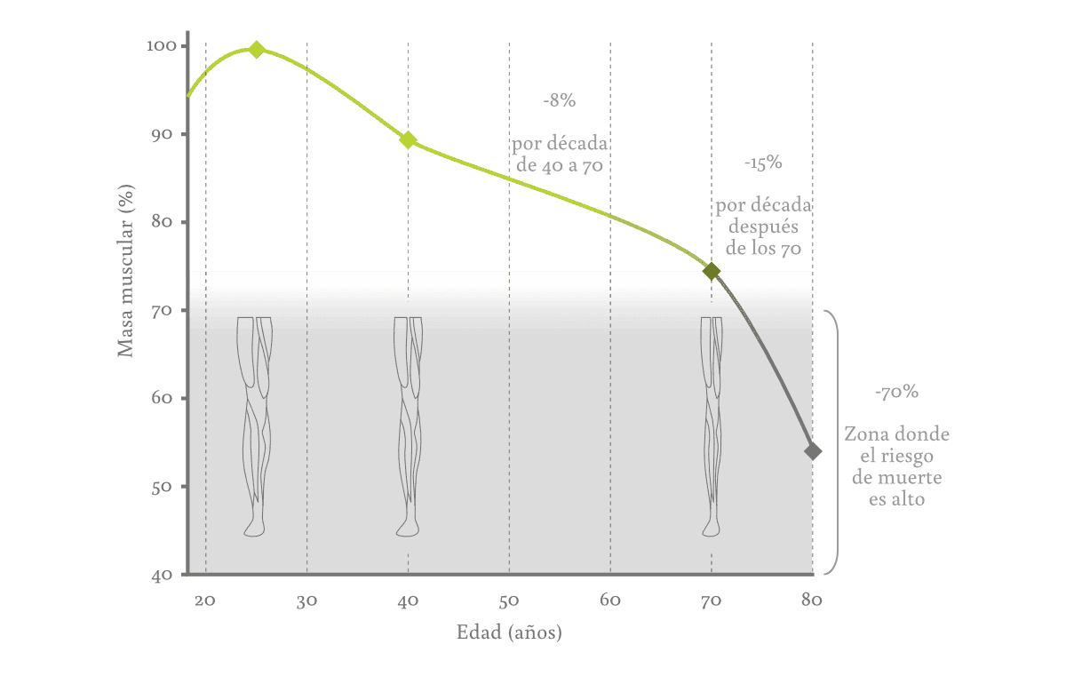Aproximadamente a los 30 años alcanzamos un pico de masa muscular y ósea. Luego, la pérdida de músculo y hueso está asegurada, y nuestra salud, en riesgo, a menos que hagamos actividad física para contrarrestarlo.