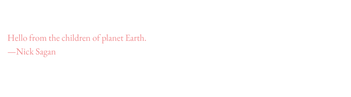 La grabación era inconfundible, la voz nítida y dulce de Nick Sagan a los seis años. Hello from the children of planet Earth. Los labios rosados de un nene apoyados sobre un micrófono, su padre alentándolo desde la cabina de control, consciente de que con esa grabación la voz de su hijo estaba volviéndose inmortal. El mensaje que iba a viajar a través del tiempo y el espacio, el mensaje que alguien más iba a encontrar, el mensaje que décadas más tarde iba a volver a la Tierra en la forma de una serie numérica infinita. Detrás de la voz del niño venían los demás saludos, en cincuenta lenguas y en cincuenta labios, que a su manera decían lo mismo: acá estamos, acá estamos, vengan a visitarnos, no estén solos, no nos dejen solos.
