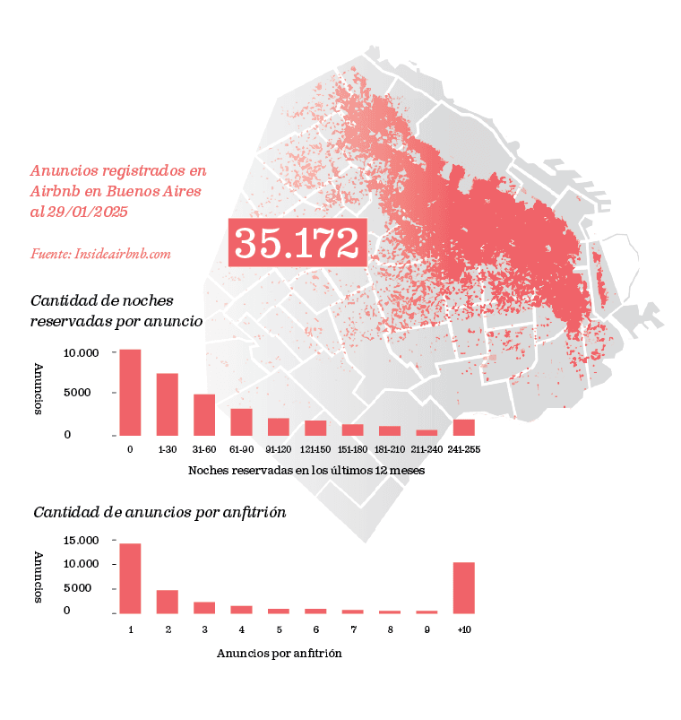 Plataformas como Airbnb venían a proponer que cuando visites una ciudad te quedes en la habitación de un vecino con quien podías encontrarte y salir a disfrutar con la perspectiva única del local, no desde la terraza de un bus de turistas con una guía de los 10 mejores lugares según quién sabe. Hoy grandes pools inmobiliarios compran departamentos para alquiler temporal dejando llaves en candados colgados de rejas o con cerraduras digitales sin mediar encuentro con ninguna persona, compitiendo por el escaso stock de viviendas y aumentando su precio. Estas plataformas pueden exacerbar la transformación de barrios enteros en mercancía, elevando el costo de vida y erosionando los lazos vecinales.