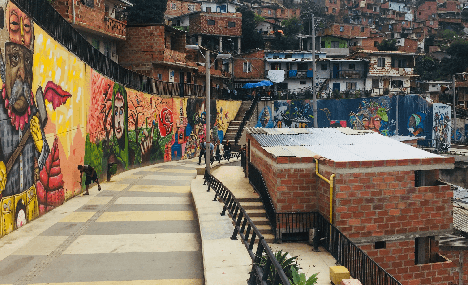 Intervenciones artísticas La Comuna 13 de Medellín fue sinónimo de violencia durante años: su historia reciente estuvo marcada por enfrentamientos entre grupos armados, represión estatal y desplazamientos forzados. A través del arte e intervenciones urbanas, la comunidad impulsó un proceso de resignificación urbana y cultural.