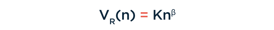 En particular, postula que el tamaño del vocabulario es una función del tamaño del texto de esta forma: