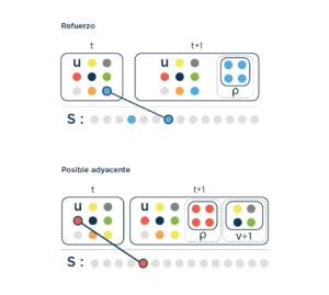 Pero ¿qué pasa si combinás una Urna de Pólya con la idea de posibles adyacentes? Aparece un modelo que está pegado a los dos, en la frontera de lo posible: el modelo de Urna de Pólya con gatillo por la novedad. ¿Qué quiere decir esto?