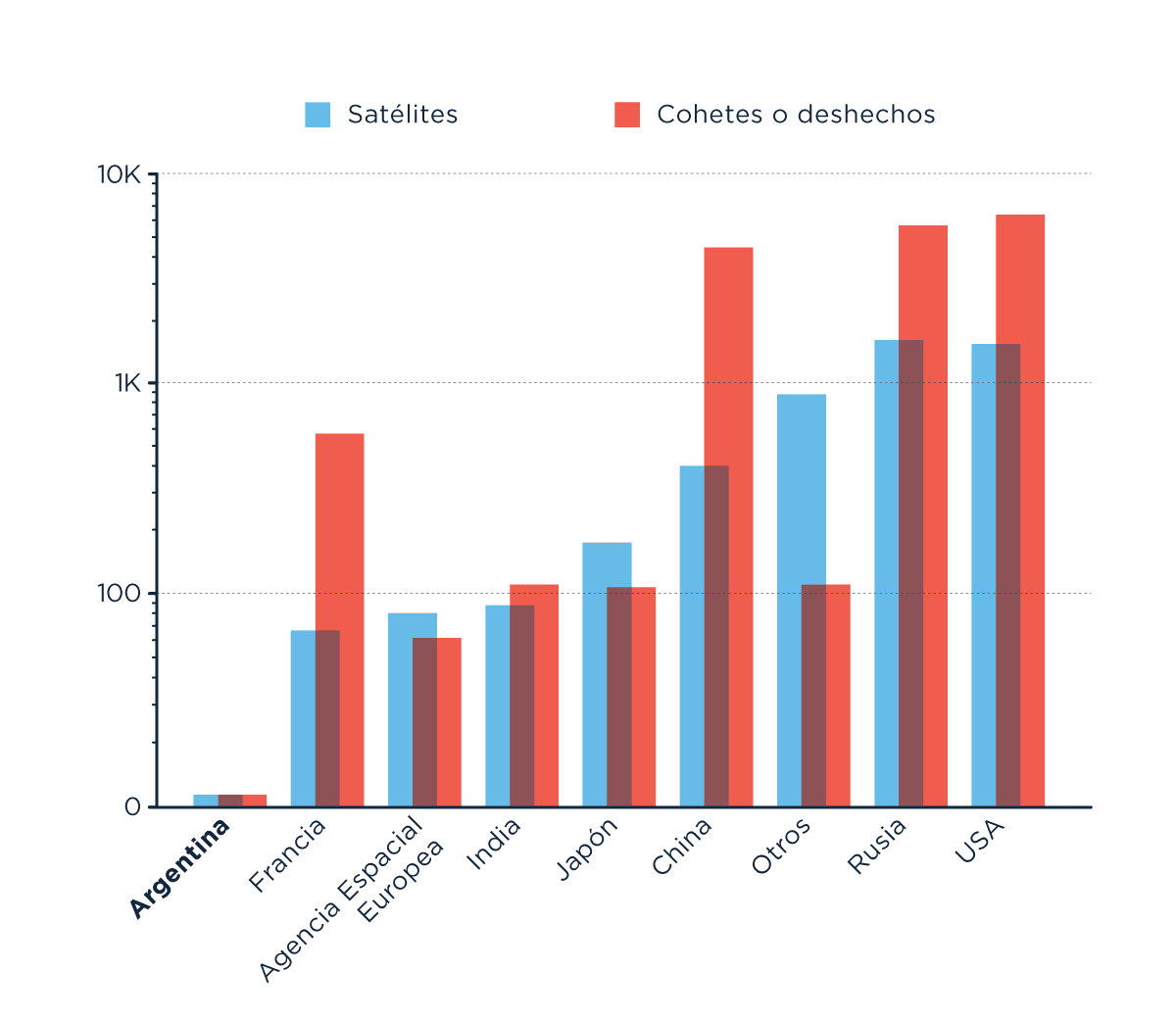 | País/Organización | Satélites | Cohetes o Desechos | Total |