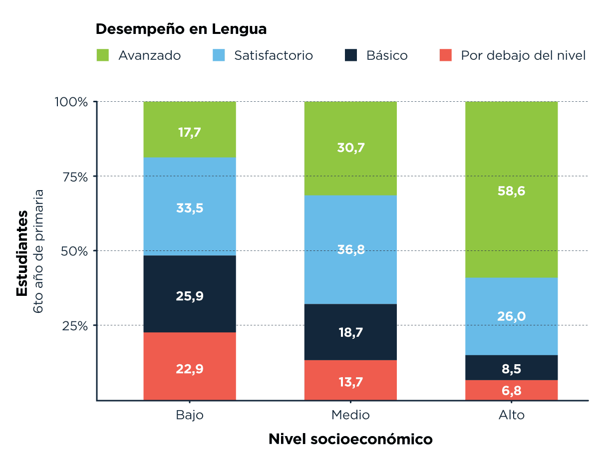 De hecho, los resultados de las pruebas Aprender, que comenzaron a administrarse en el año 2016 en Argentina para medir el nivel de aprendizaje de los estudiantes, señalaron la existencia de una importante brecha entre niños de diferente sector socioeconómico. Los resultados de la Provincia de Buenos Aires señalaron que, en una prueba de comprensión de textos escritos, el 32,4% de chicos y chicas de nivel socioeconómico medio se desempeñó por debajo del nivel satisfactorio. Mientras tanto, el porcentaje de chicos de nivel socioeconómico bajo que se desempeñaron por debajo del nivel satisfactorio fue del 48,8% (las brechas entre nivel socioeconómico alto y bajo, como se imaginarán, es aún mayor).