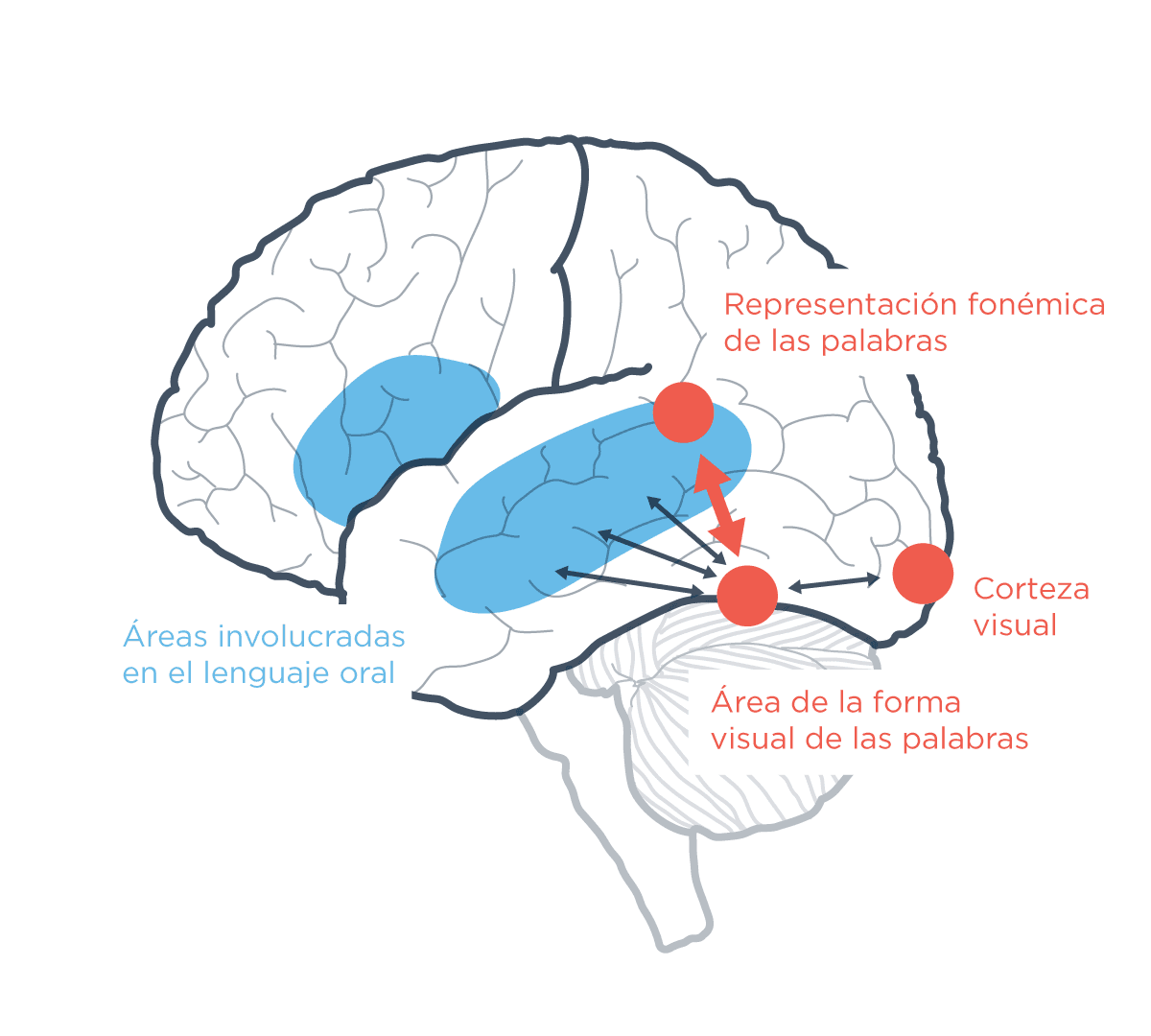 Entonces, cuando leemos una palabra, la caja de letras identifica la forma de la palabra y luego distribuye esa información a zonas que codifican el significado de la palabra, el sonido y permiten la posterior articulación. Aprender a leer es, de alguna manera, vincular las áreas del procesamiento visual ortográfico con las del lenguaje oral asentadas en el hemisferio izquierdo.