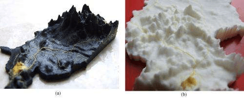 El resultado fue ‘las rutas que se forman son sorprendentemente parecidas a las que diseñamos durante años gracias al trabajo de un montón de gente especializadísima’. Pero los investigadores no se quedaron con este ya interesante y hermoso resultado, sino que se hicieron otras preguntas. Dado que para diseñar una red de transporte tenemos que tener en cuenta condiciones del terreno, como pueden ser la altura de las montañas o que no se puede construir sobre el mar, ¿podemos dar de alguna manera esas señales de dificultad y ver qué pasa con el crecimiento de Physarium?