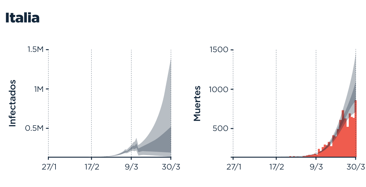 Lo primero a observar es la incertidumbre: sabemos muy poco y hacer modelados es muy difícil, entre otro montón de cosas, por la falta de datos y la diversidad en la que esos datos son tomados. Este equipo, para construir sus modelos, usó como dato principal el número de muertos, no diagnósticos, porque asumió que era una métrica más robusta.