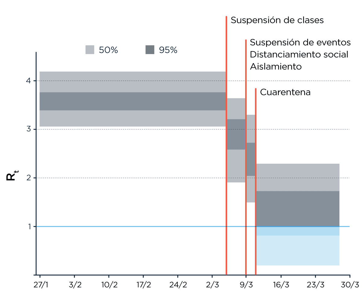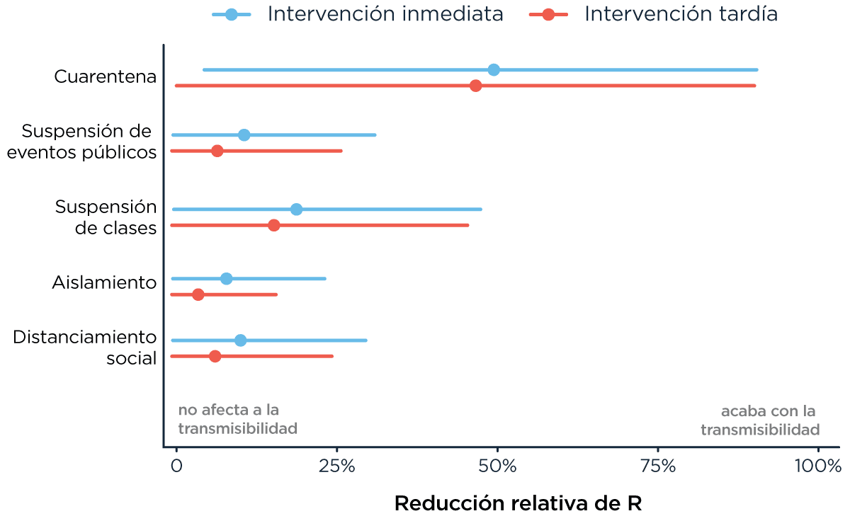 Uno de los desafíos más grandes en este momento (el que tiene múltiples equipos en todo el mundo trabajando contra reloj) es tratar de entender cómo distintos tipos de intervención cambian ese R. Hace apenas unos días salió un trabajo de Imperial College donde evalúan precisamente eso: recopilando datos sobre la forma en la que se tomaron medidas en diferentes países, tratan de hacer la inferencia sobre cuán efectivas son a la hora de cambiar esa tasa de reproducción y, al final, qué impacto tienen en el progreso potencial de la epidemia.