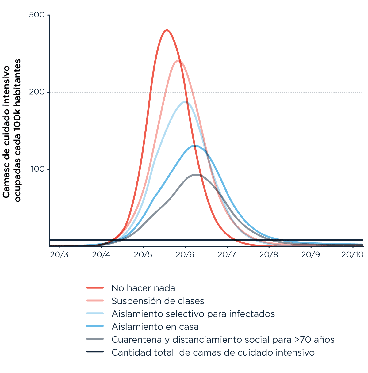 Un detalle no menor del modelo de Imperial es que asume que la capacidad de carga del sistema de salud es la que hay y ya, no contempla iniciativas por expandir la disponibilidad de personal, materiales, etc.