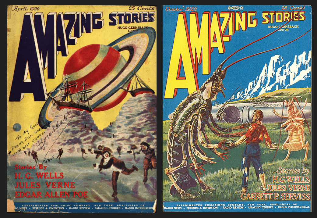 Dos números de la mítica revista donde Hugo Gernsbeck acuñó el término “ciencia ficción”.
