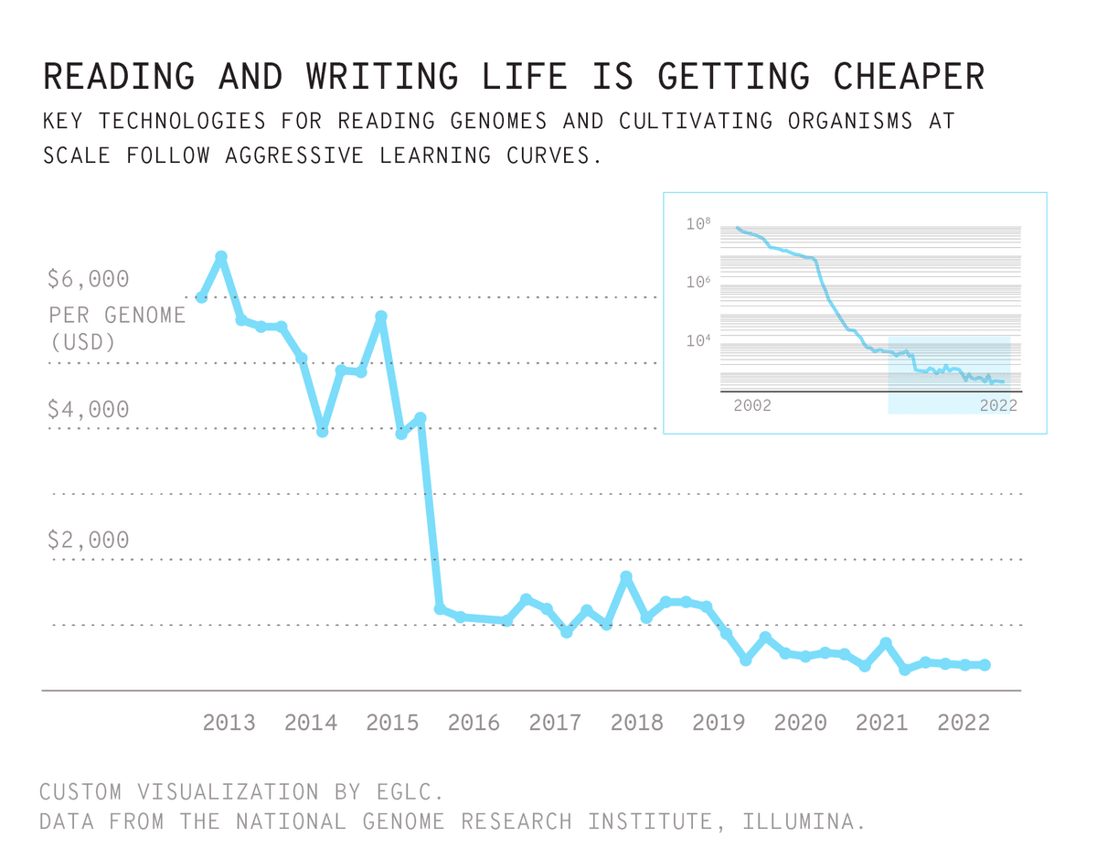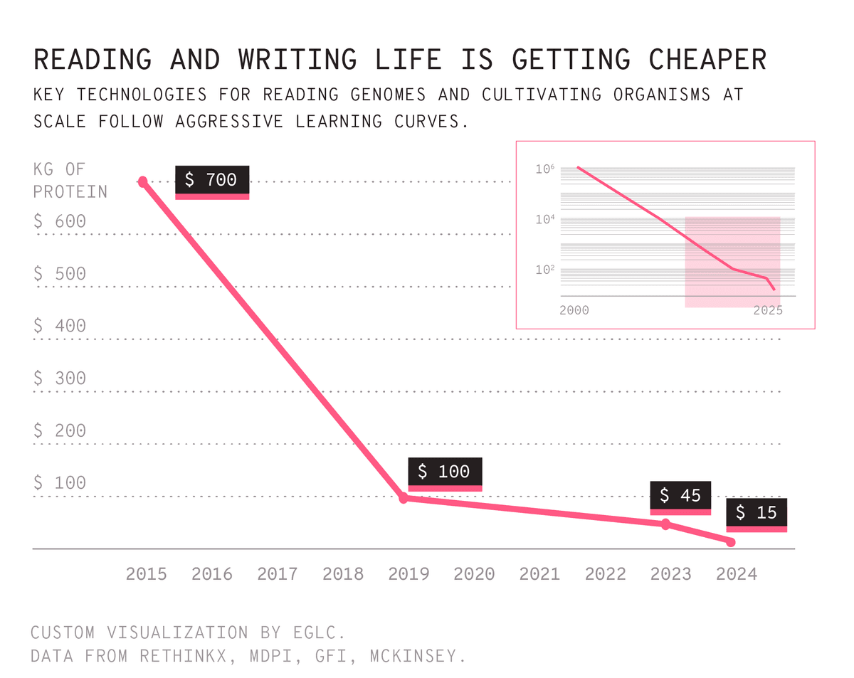 The bio cost curve is tempting even to the most capitalist-minded—not out of ecological, aesthetic, or moral conviction, but out of convenience. These advances are part of a concrete present. And a better future is starting to become imaginable—almost inevitable—not because of the problems created by the current system, but because of the possibilities unlocked by the next one. Bio maximalism doesn’t have to choose between love and fear.