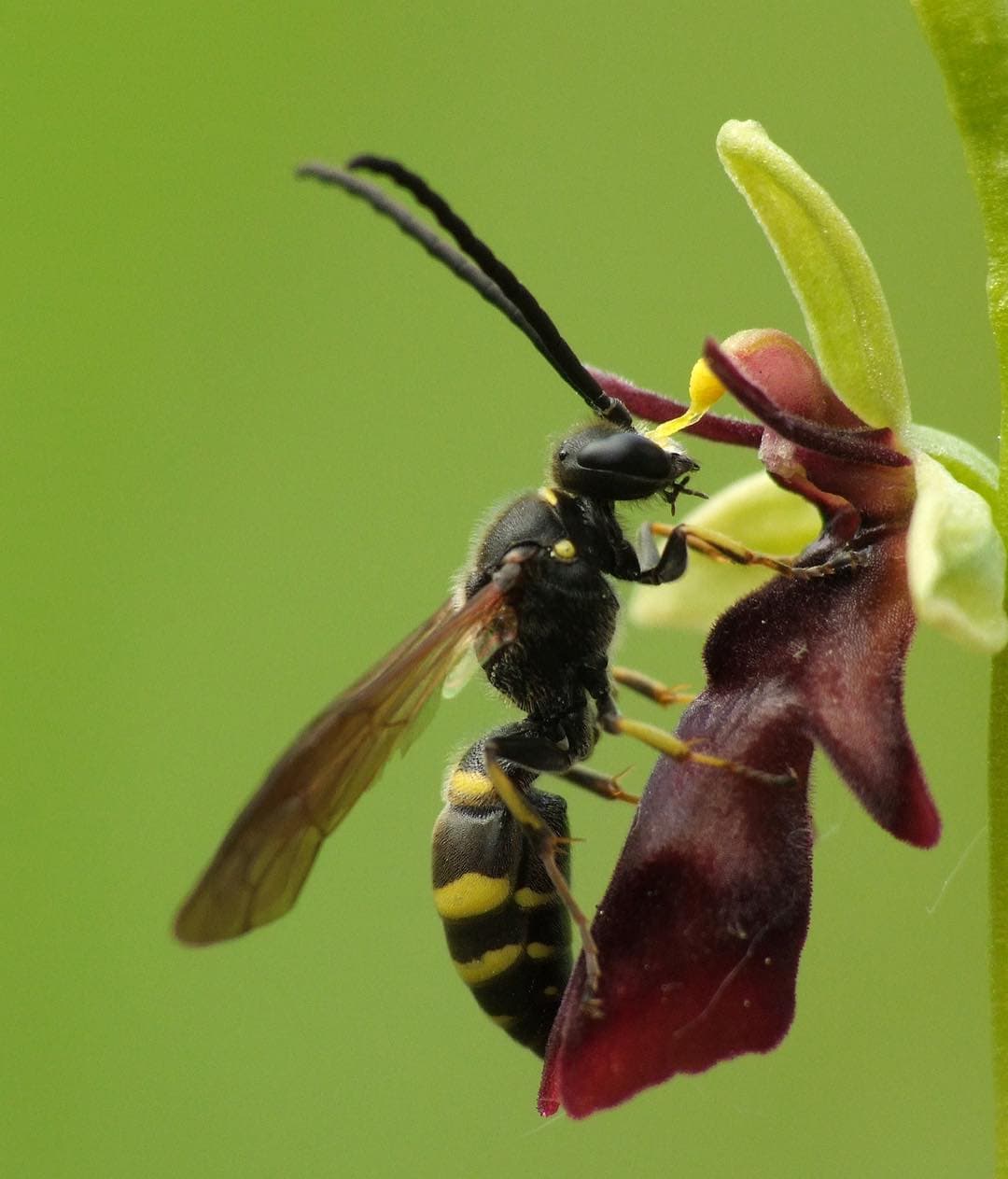 También son especialmente traicioneras unas orquídeas de los géneros Ophrys y Cryptostilis que llegan al extremo de parecerse a hembras de avispas, tanto en su morfología como en las moléculas volátiles que liberan (similares a feromonas avispales). El macho avispa o zángano, excitado como cualquier mortal pasado de copas que no distingue con quién está por copular, se prende y lo único que gana es flor de desilusión (y un poco de polen es sus patas).