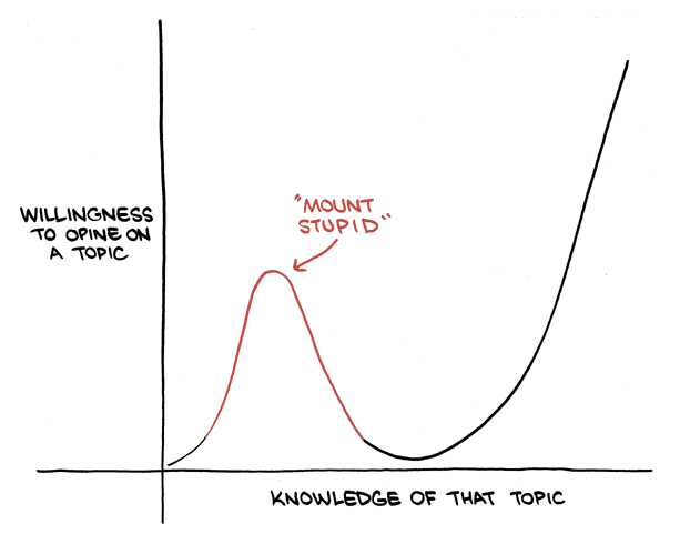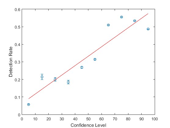 Algo que apareció en este experimento (y que veníamos viendo en los experimentos anteriores en forma más ruidosa o menos evidente) fue un claro descenso en la tasa de detección para la posición más extrema (la tasa de detección es mayor para respuestas con nivel de acuerdo entre 80 y 90 que entre 90 y 100). Es decir, la detección de engaño aumenta con el grado de polarización hasta cierto punto, y luego deja de crecer e incluso disminuye en un extremo. Este comportamiento, quizás algo antiintuitivo, sugiere que un sujeto completamente polarizado es incluso más susceptible a ser engañado que un sujeto un poco menos polarizado, o polarizado pero no taaaanto. ¿Puede eso estar diciendo que los sujetos que reportan confianzas extremadamente altas no son los más introspectivos respecto de ese tema? ¿Dunning-Kruger, sos vos?