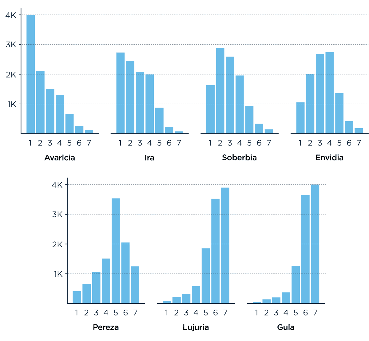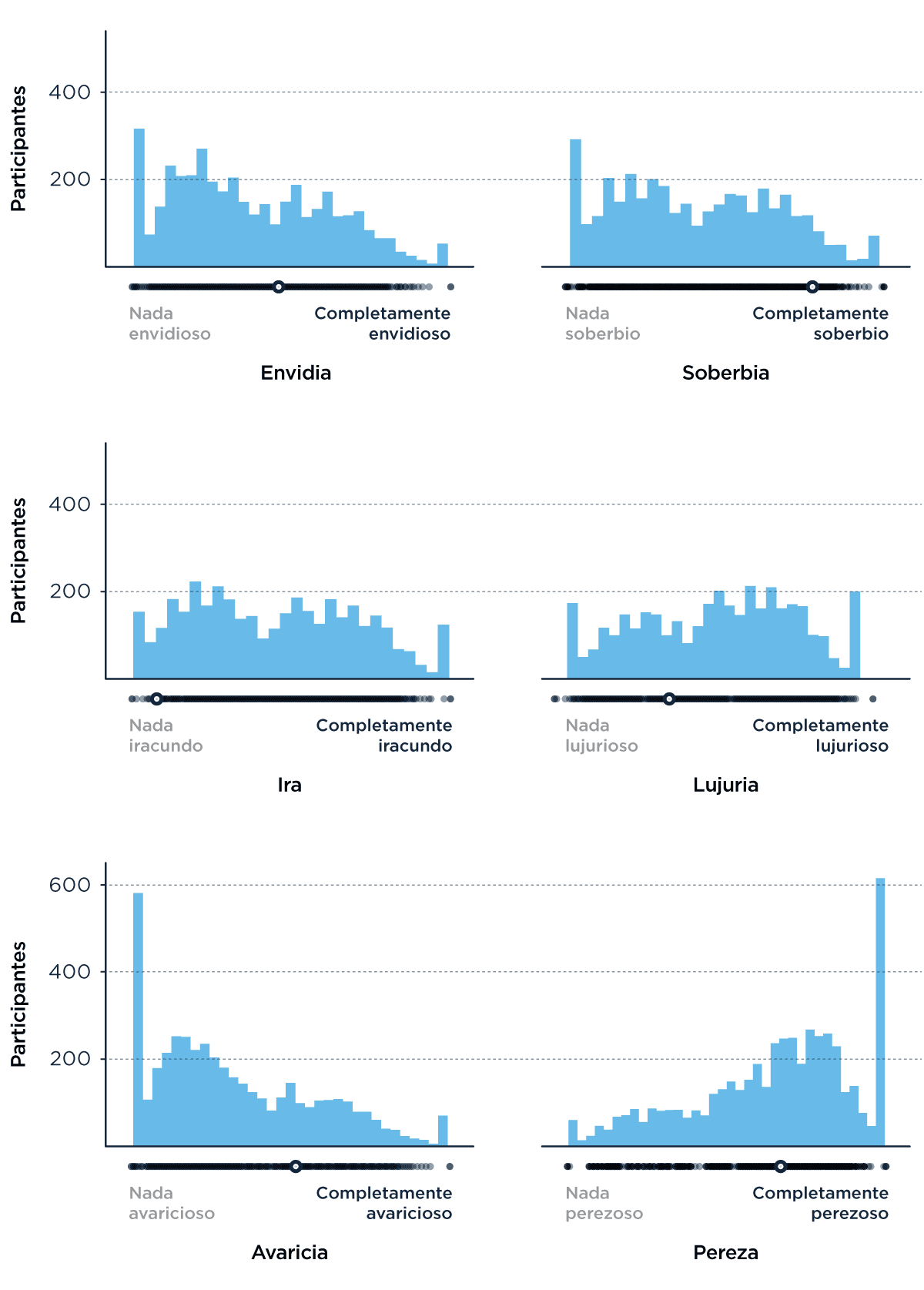 Hace unas semanas lanzamos un experimento sobre los pecados capitales en el que ya participaron cerca de 14.000 personas (si aún no lo hicieron, recomendamos que antes de seguir se tomen 10 minutos y pasen por acá para evitar un montón de spoilers científicos y de los otros). El análisis completo y en profundidad del tsunami de datos resultantes llevará unos meses, pero queremos acercarles los primeros resultados que ya están apareciendo. Un poco porque es lo que siempre prometemos cada vez que participan de un experimento, otro poco por la ansiedad misma de compartirles cuanto antes lo que estamos aprendiendo gracias a su participación, y otro poco porque, fiel al espíritu de ciencia abierta y colectiva, queremos que nos acompañen en la interpretación de estos resultados preliminares.