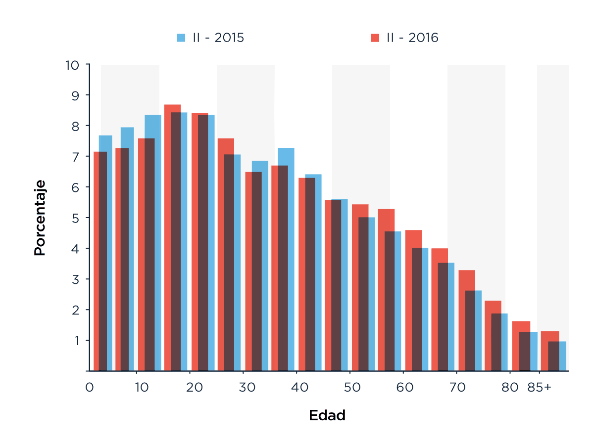 Estructura de edades de la muestra expandida de la EPH II-2015 y II-2016