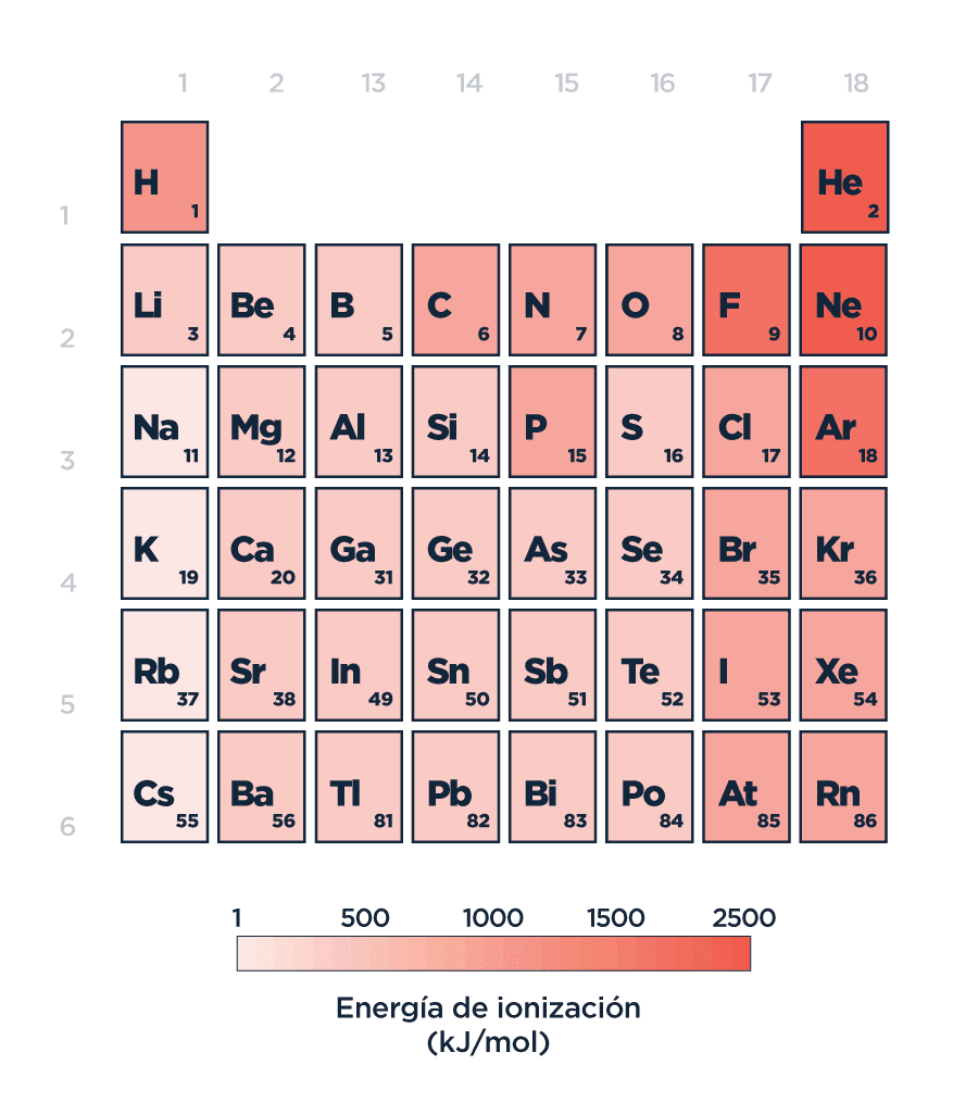 Cuanto menor sea la energía de ionización (como en el caso del cesio, Cs), más fácil será separar el elemento de su electrón más externo, por lo que tenderá a cederlo sin preguntar demasiado. Notar los valores extremadamente altos para los gases nobles. Su distribución de electrones con todos sus orbitales llenos está más cómoda que un viernes de lluvia en la cama meta helado y pelis. Te la regalo el esfuerzo que se necesita para que arranquen a algún lado.