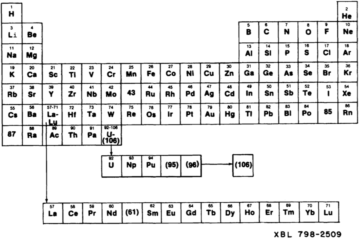 Uno de los últimos aportes significativos a la ley periódica se lo debemos a Glenn Seaborg. Allá por los años treinta no paraba de sacar y poner neutrones en los núcleos de los átomos para fabricar isótopos, es decir, variedades más pesadas o más livianas de los elementos. Pero Seaborg la tenía especialmente clara con los más pesados de todos, los del uranio para aquel lado. Sintetizó diez nuevos, todos radioactivos y bastante distintos a los metales más comunes, por lo que, más allá de mantenerlos fuera de su casa, no sabía muy bien dónde ubicarlos en la tabla. Recién a fines de los años cuarenta estos nuevos elementos fueron agrupados como actínidos (o actinoides, como recomienda la IUPAC, algo así como la RAE de los químicos), y tomaron su lugar definitivo justo debajo de los lantánidos (o lantanoides, las “tierras raras”) entre las dos últimas filas de la tabla. Así quedaron los elementos del fondo, quizás como un resabio de su oscura historia, separados ahí abajo. La realidad es que este nuevo conocimiento se mantuvo oculto durante varios años, no porque la comunidad científica todavía lo estuviera revisando o no terminara de aceptarlo, sino porque estaba siendo utilizado por las más altas esferas políticas para el Proyecto Manhattan. Ese que produjo las bombas atómicas que destruyeron Hiroshima y Nagasaki. Porque, más allá de lo que digan, ciencia y política nunca fueron cosas diferentes.