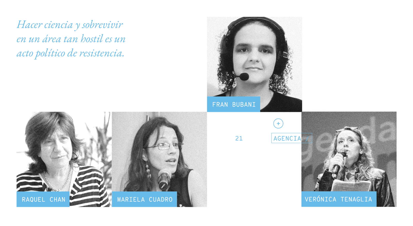 Las mujeres que este texto intentó retratar son diversas. Algunas trabajan en el norte con poblaciones de animales, otras intentan comprender aristas del conflicto bélico que Argentina tuvo en el profundo Sur. Algunas soñaban con navegar el espacio exterior y otras viven fascinadas con los desafíos cotidianos. Sus edades se reparten en ese rango amplio que va desde los 30 hasta los 65 años. Se dedican a la biología, a la antropología, a la ingeniería, a la arquitectura, a la nanotecnología, a las relaciones internacionales. Son investigadoras, emprendedoras, docentes, doctorandas, gerentas. Y están construyendo, como quien lee esto, su propio futuro.
